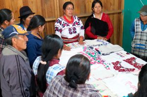 Taller Atiry, Mujeres Bordando en el Mercado de San Roque, Fundación Gescultura, cantón Quito, provincia de Pichincha, 2018. Ficha No: 2197.El proyecto consistió en la generación de espacios para el diálogo y enseñanza de técnicas tradicionales de bordado, para las mujeres indígenas trabajadoras autónomas del mercado de San Roque.